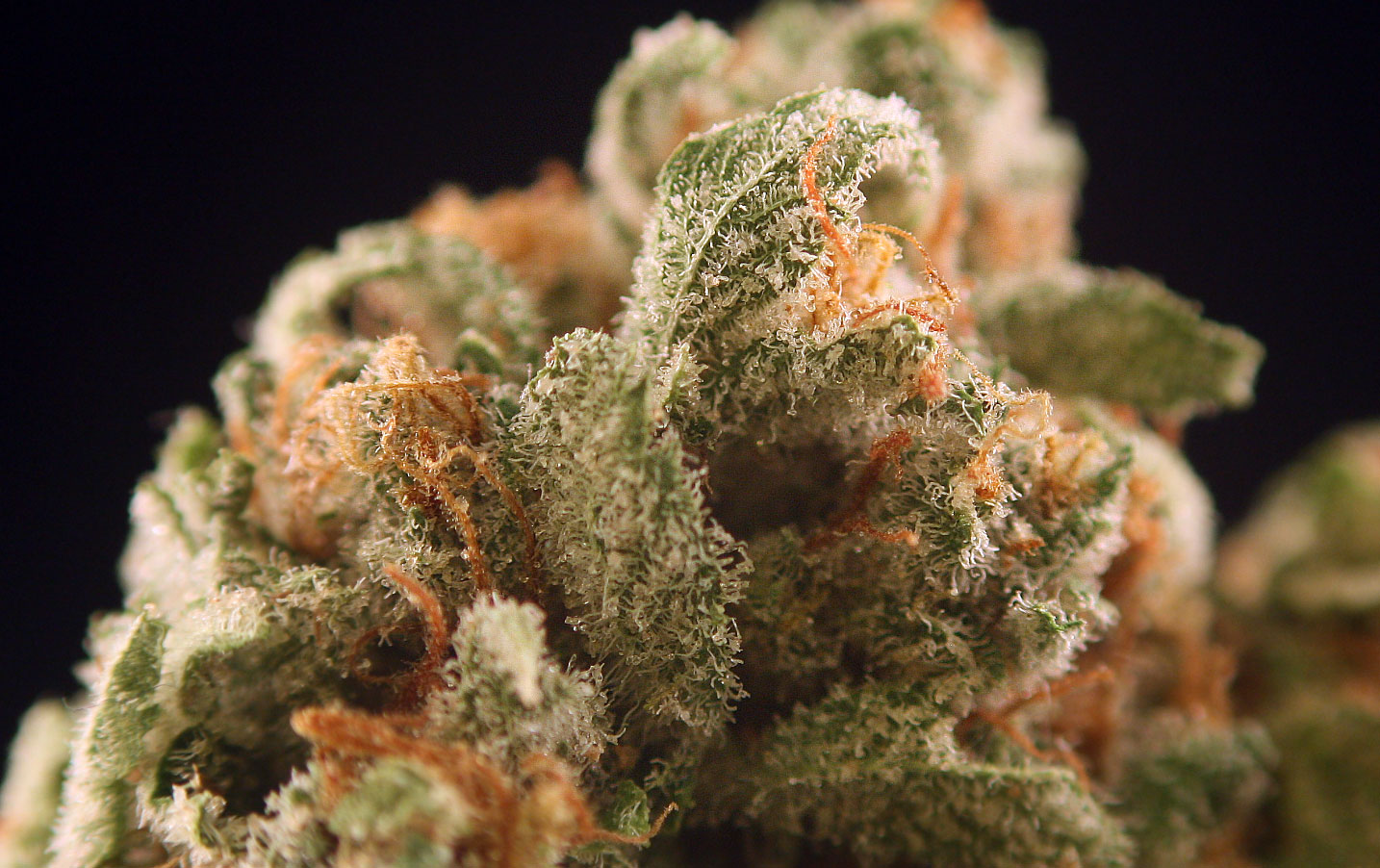 Appearance and Feel: Exceptionally dense and completely covered in that crystally trichome goodness. The few pistils that pop up are a dark brown, which shows off a lovely contrast to the light green calyx and darker green leaves. Not the prettiest trimming job I’ve seen, but when you pump out the kind of product they do at the Frost Factory, it’s ok to leave a few stragglers.