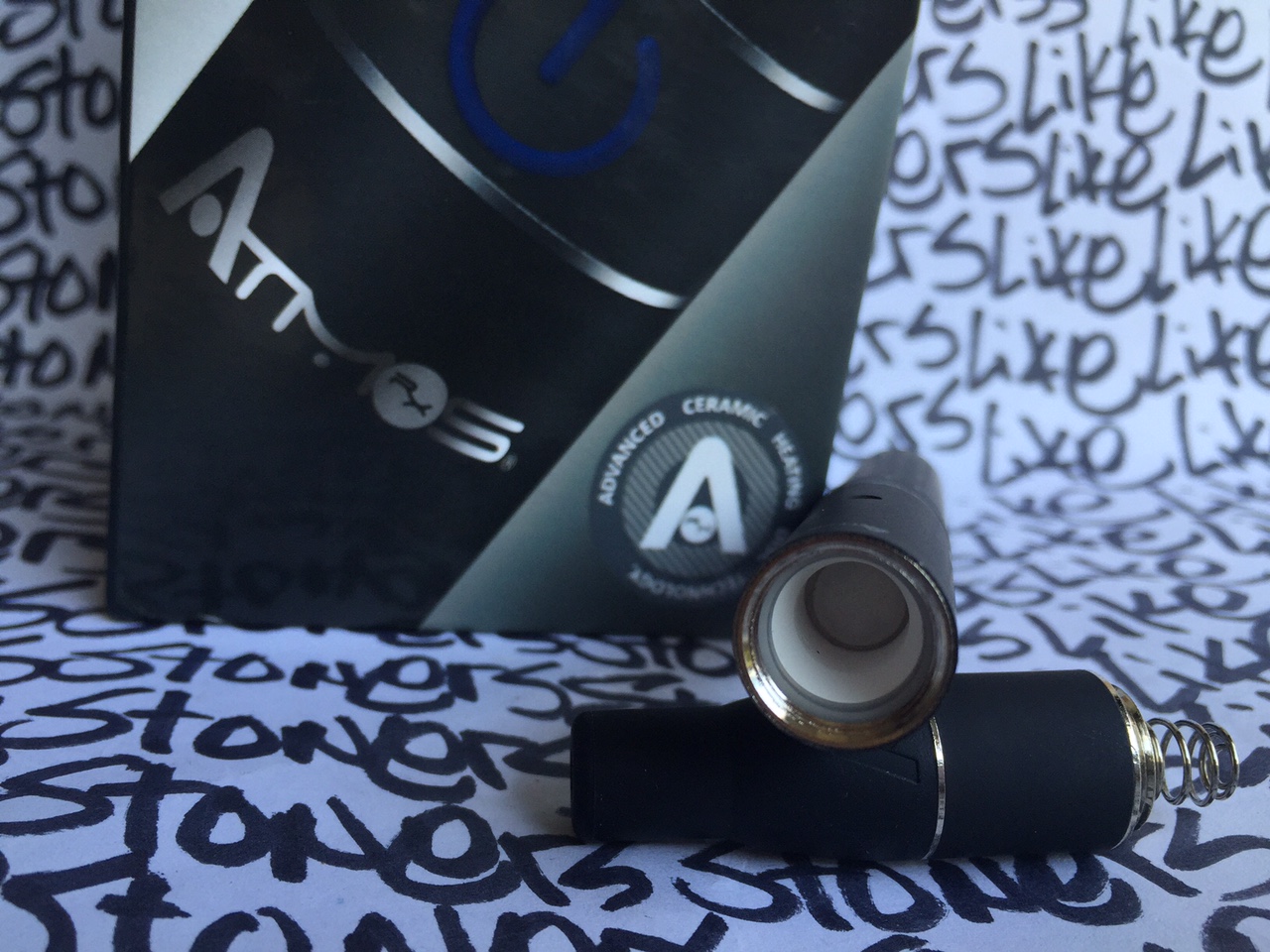 The Atmos vape pen starter kit comes with everything you need to get stoned except for cannabis. That includes a Lithium Ion battery, ceramic heating chamber, a small spring that keeps dry herbs in check. There’s also a mesh filter and a glass screen. And an included ceramic filter and rubber mouthpiece to keep bits of weed or concentrates out of your mouth. Inside the box we also found the typical cleaning brush, wall adapter, cordless USB Charger and a packing tool. Because there are a million vape pens for sale, depending on where you buy your Atmos vaporizer you can score a free: