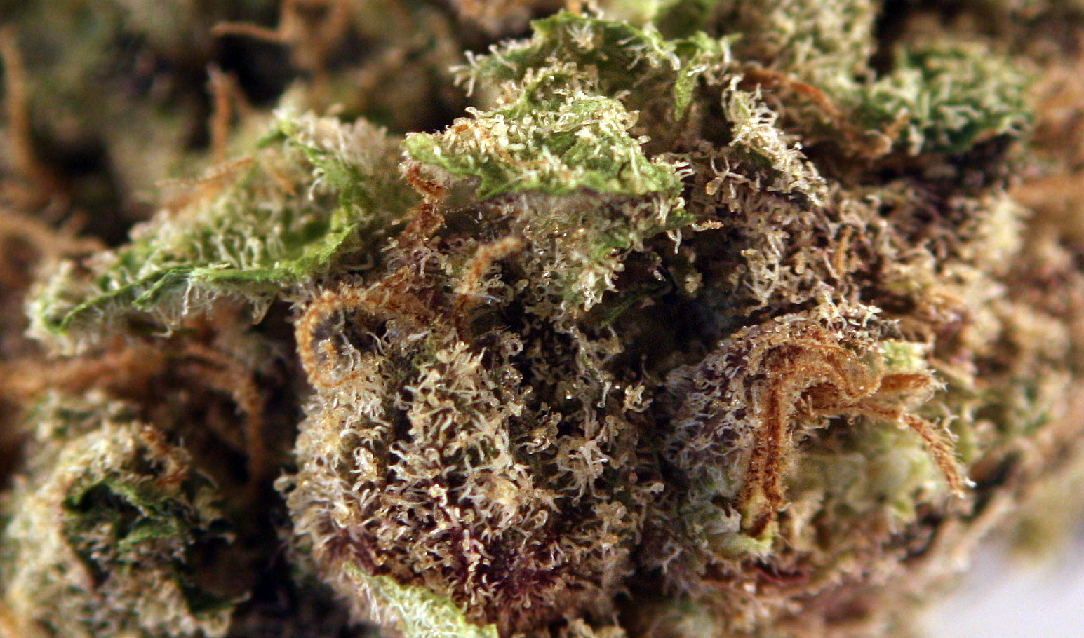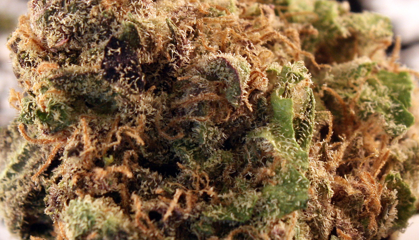 Appearance: The Blueberry strain has a remarkable covering of trichomes standing at full attention. What are they standing on? Everything! Buds, calyxes, pistils, leaves, the bag, the jar, and even the desk. It’s all covered with trichomes. This is some beautifully bold looking Blueberry. The bud is dark green with some vivid purple parts here and there. Definitely stuff stoners like.