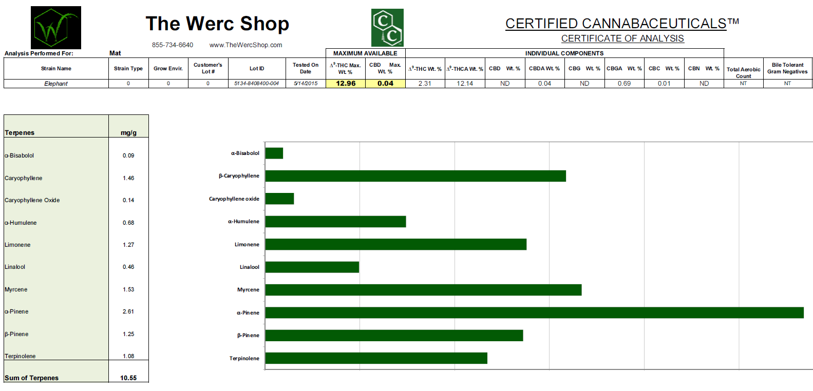 Total Terpenes – 10.55 mg / g