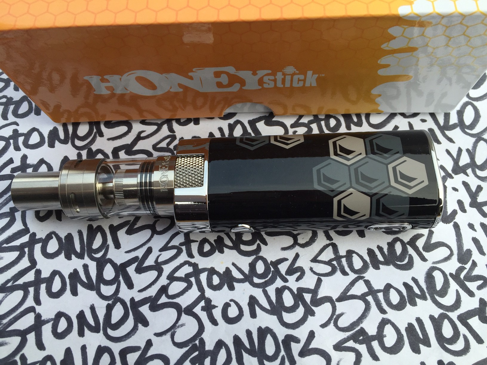 We scored a Honey Stick Smart Mod vape starter kit. Apparently this is the first ever all-in-one Sub-Ohm vape pen that’s specifically engineered for thick oil and concentrates. The Honey Stick vape pen converts CO2 extracts, essential oils (including THC and CBD oils) and other e-liquids into tasty vapor. Say goodbye to combustion and burning. You should also say goodbye to your homemade dry herb vaporizer, man and step up to vaping extracts, man. You’ll thank yourself later.