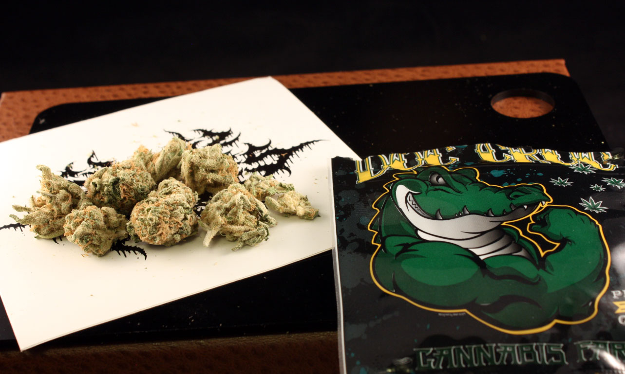 Appearance: At first glance it’s hard to tell if this bud has some light green calyx action, or if that’s just all the trichomes changing it’s color. It’s definitely winter time at the Doc Croc Cannabis Farm that’s for sure.