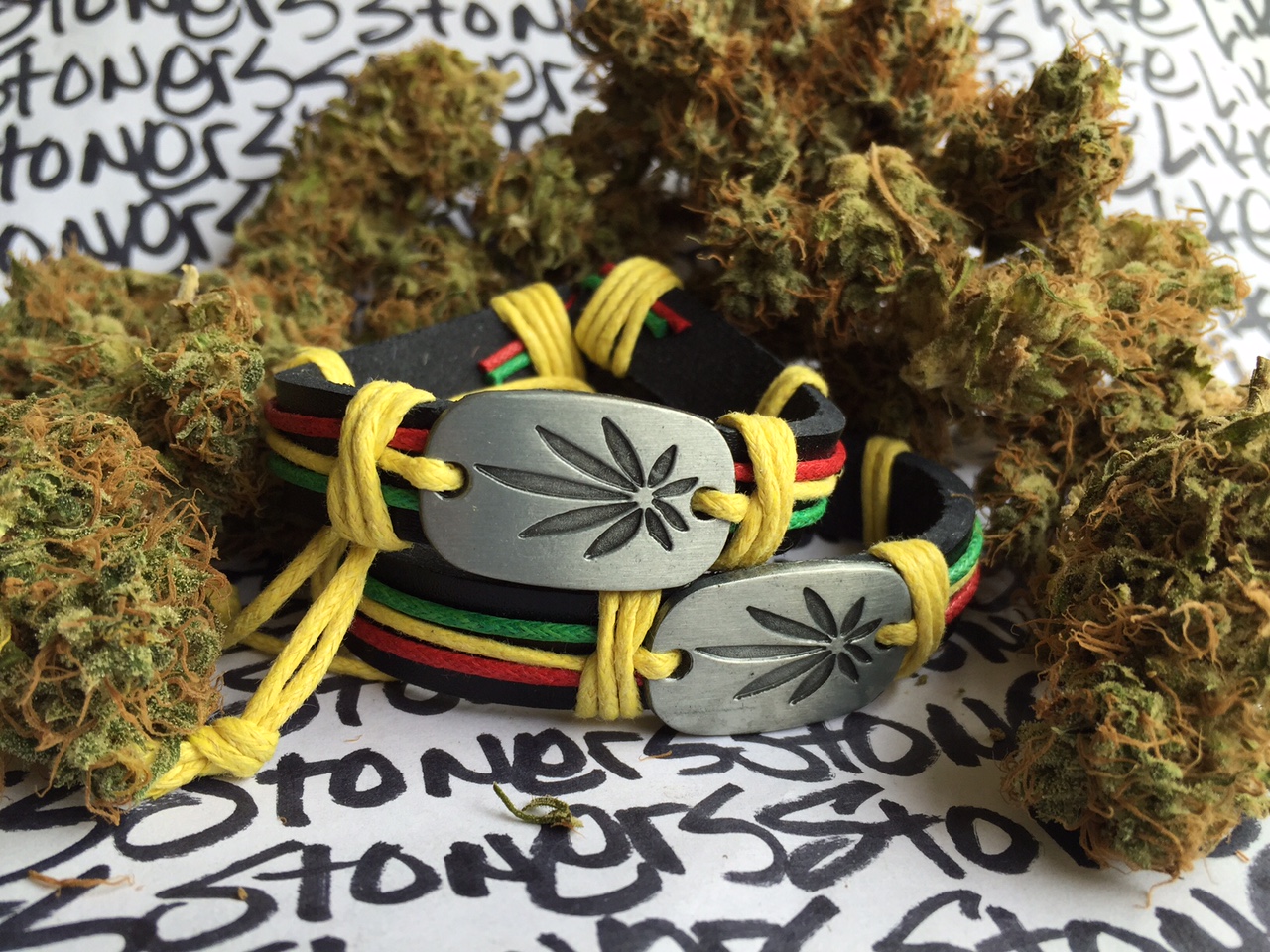 Same bracelets save lives. They announce you’re allergic to some shit that doctors might accidentally give you to save your life. And some bracelets—like these little leather and alloy joints sent to us by TrendyBracelets.biz—announce a love for weed. Much cooler than allergy bracelets or hospital patient-identification tags, right? Notice the red, gold and green colors on these Rasta bracelets? You might know that plenty of stoners, not to mention Rastas, rock these colors. When we see these colors together we even smell weed. But what’s the history on these colors and why do stoners and Rastas dig ‘em so much? Rastafari is an Abrahamic religion that started in Jamaica during the 1930s. It stemmed from the coronation of Haile Selassie I as Emperor of Ethiopia in 1930. The Rasta colors red, gold and green are taken from the Ethiopian flag. It’s said that the green stands for the fertile land and lush greenery of the African continent. But, we like to think that it stands for really good pot. The yellow represents the sunshine of the African land (used to grow really good weed) and the red symbolizes the blood shed by it’s people in defending the country. One reason why stoners identify with these colors is because they encompass the Rastafari way of life. And that lifestyle involves the spiritual use of cannabis of course. What’s not to like about that? Plus stoners dig rockin’ the red, gold and green because like many of the Rastas who wear ‘em, they broadcast a religious devotion and deep appreciation for weed. We have three hand-crafted Rasta bracelets to kick down. One size to fits most men and women. They’re 0.5″ wide and 6 cm in diameter and can be adjusted to anywhere between 15-20 cm. They weight just 12 grams. We’ll also sweeten the pot and toss in a pack of STUFF STONERS LIKE ROLLING PAPERS and STICKERS. HOW TO ENTER: