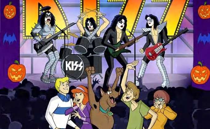 In the new cartoon dubbed Scooby-Doo! & KISS: Rock & Roll Mystery Shag, Scoob, Daphne, Velma and that dork who always wears an Ascot travel down to the newly opened KISS World theme park. Which is funny because Kiss starred in a movie called Kiss Meets the Phantom which took place in a theme park.