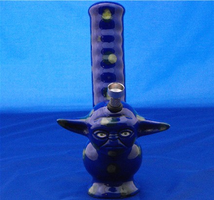 Sure there are lots of fancy bongs out there. But there’s no bong as memorable as this ceramic master Yoda bong. It’s glazed ceramic and will get you glazed in just a few hits. The color is a cool blue and the main body features some grips to make sure this thing doesn’t slip through your fingers while you get high. It also features a really wide mouthpiece for maximum-sized hits. The down stem and bowl can be detached for cleaning. And it measures 13cm from ear to ear, 17cm from back to front and 23cm high. It would probably rule filled with a bit of snow or ice gleaned from the planet Hoth, but ice cubes out of your fridge will suffice. This would be a great addition to your Star Wars bong collection. A Yoda bong would look great next to your r2d2 bong and your Darth Vader bong.