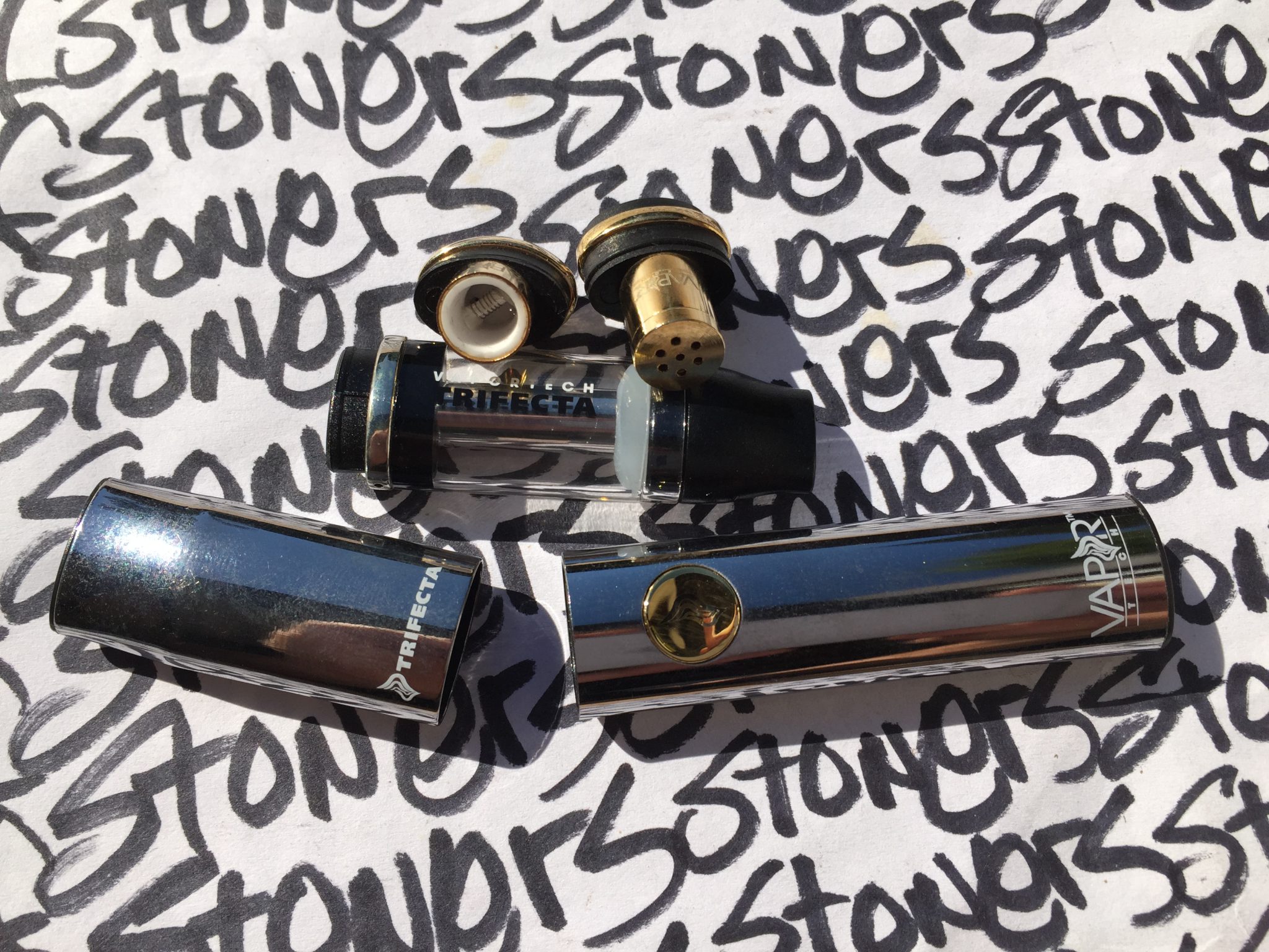 the VaporTech Trifecta Vape Pen is pretty dope. With it you can vape concentrates like shatter and wax and all the other popular shit as well as dry herbs and e-liquids. We don’t fuck with e-liquids so we don’t know what to tell you about that shit, but we don’t recommend using the dry herb tip. It’ll char your weed not really vaporize it. And it’s only good for a couple uses before it gets too gummed up to function. Anyhow, when it comes to concentrates this thing works great. It’s an entry-level vape pen at about $50 and pefroms a lot like the PowerPen or the Kandy Pen. And performs just as well. Click the big button five times and this thing is ready to get stoned.
