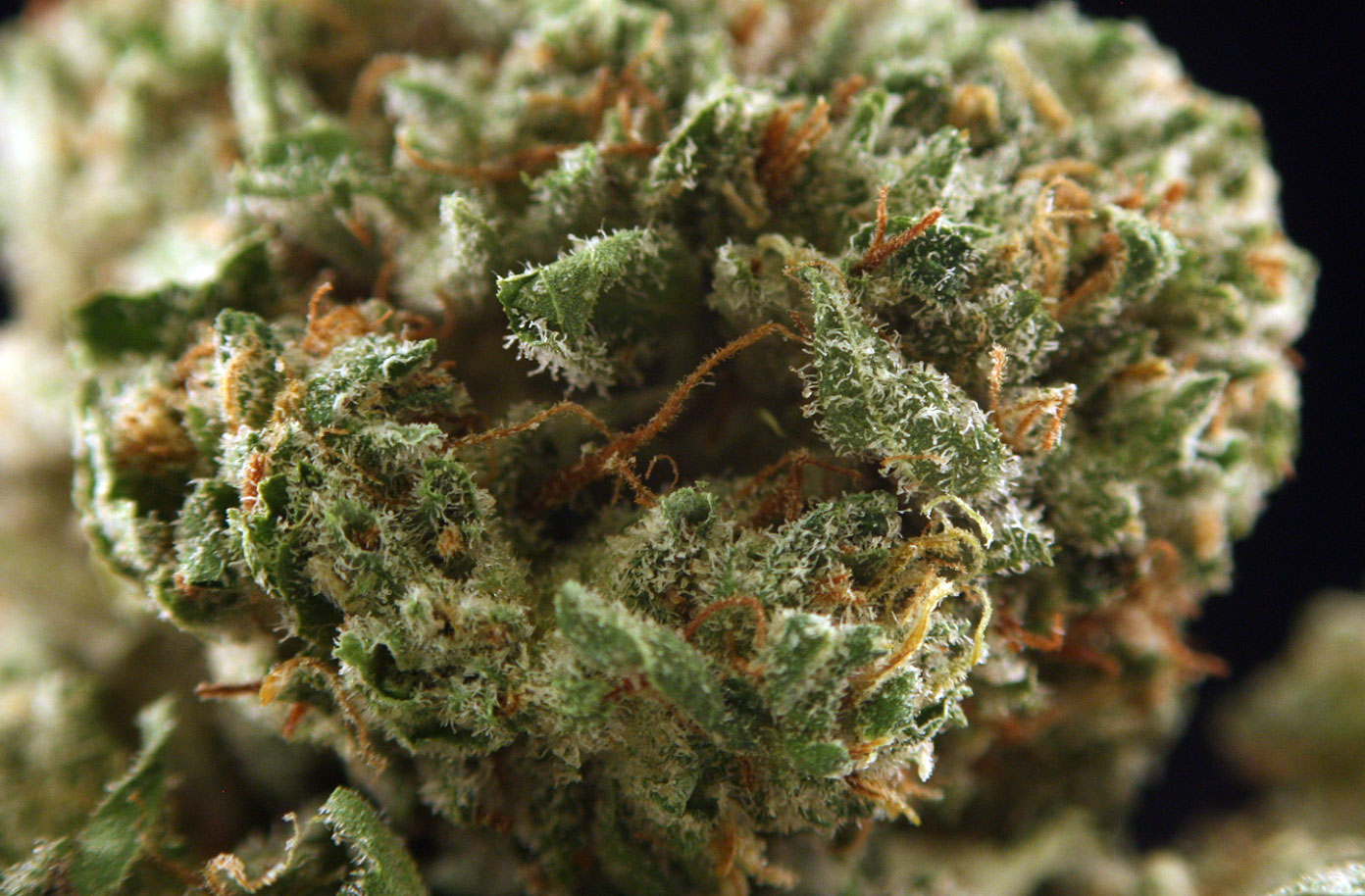 Wait, that doesn’t work. Fuck it. This is some damn nice looking weed, as you can see by the pictures. The buds are a lighter green with dark pistils and a frosty dusting of trichomes throughout. Beautiful stuff really.
